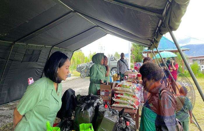 “Aksi ini menyediakan beras sebanyak 100 kg untuk dijual murah di Makodim 1812/Pegaf yang dijual murah bagi masyarakat. Selain beras, terdapat juga produk lainya seperti telur ayam, minyak goreng, gula pasir, terigu, susu kaleng, sirup, teh, kopi, mie instan, dan berbagai macam paket sembako lainya,” lanjutnya