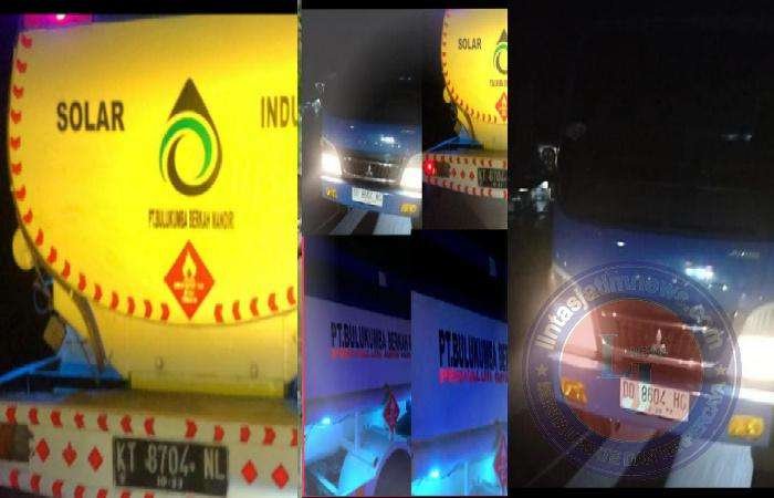 Mobil tangki industri biru putih bertuliskan dari PT Bulukumba Berkah Mandiri dan Diduga mendapatkan Jalur melalui Polda Sulsel.