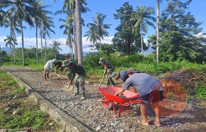 POSO Pagomex.com – Proses pengerjaan rabat jalan di Desa Uekambuno, Kecamatan Ulubongka, Kabupaten Tojo Una Una terus berlangsung dengan semangat tinggi. Satuan Tugas TNI Manunggal Membangun Desa (TMMD) Kodim 1307/Poso, yang bekerjasama dengan warga setempat, telah memulai tahap penting dalam proses ini. Dengan menggunakan skop dan cangkul, anggota Satgas TMMD mulai meratakan jalan untuk mempersiapkan tahap pengecoran yang akan dilakukan.