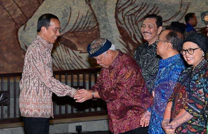 Presiden Jokowi yang mengenakan kemeja kain tenun sintang tiba di GWK, sekitar pukul 18.50 WITA. Presiden Jokowi kemudian menyambut kedatangan para tamu seraya berfoto bersama sebelum memasuki area jamuan.