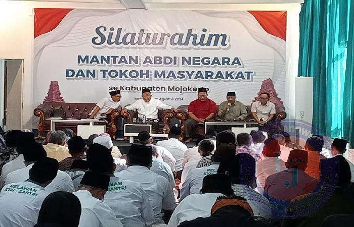 MOJOKERTO Pagomex – Tim pendukung pasangan calon Bupati Mojokerto Dr.H. Muhammad Al- Barra, LC, M.Hum dan calon Wakil Bupati Mojokerto dr. Muhammad Rizal Oktvian (MUBAROK) menggelar silaturahmi bersama mantan abdi negara dan tokoh masyarakat dan sekaligus konsolidasi tim pemenangan pasangan Mubarok di Aula Universitas Abdul Chalim di Jalan Raya Abdul Chalim Bandunganjati, Pacet, Mojokerto, Jawa timur. Selasa (3/9/2024).