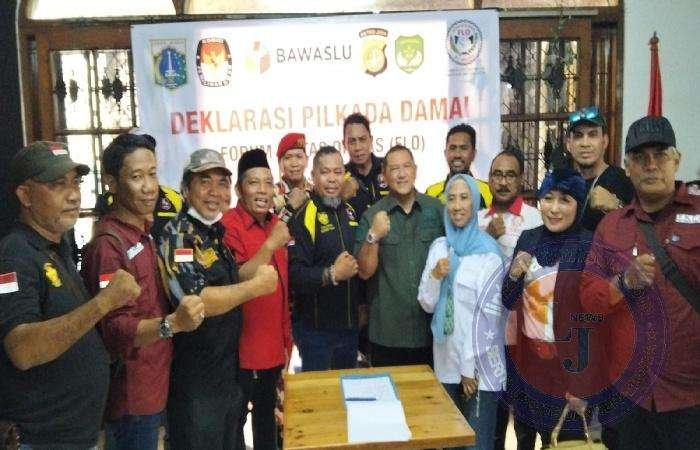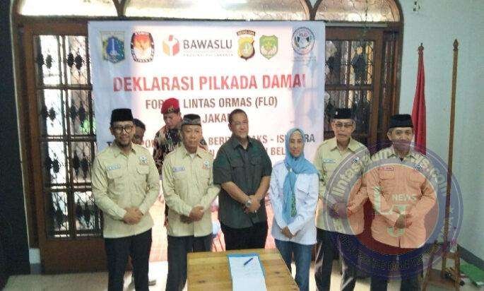 Deklarasi Damai Pilkada Serentak Tahun 2024 bersama Forum Lintas Ormas (FLO) Provinsi DKI Jakarta, Tolak Politik Uang – Berita Hoax – Isu Sara – Ujaran Kebencian dan Politik Uang.