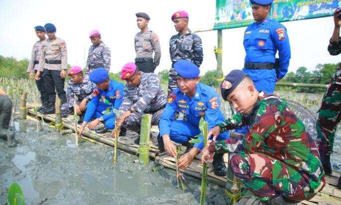 Dukung Program Nasional, Ditpolairud Polda Jatim dan Polres Gresik Tanam 10.000 Mangrove di Lumpur Gresik untuk Kelestarian Alam