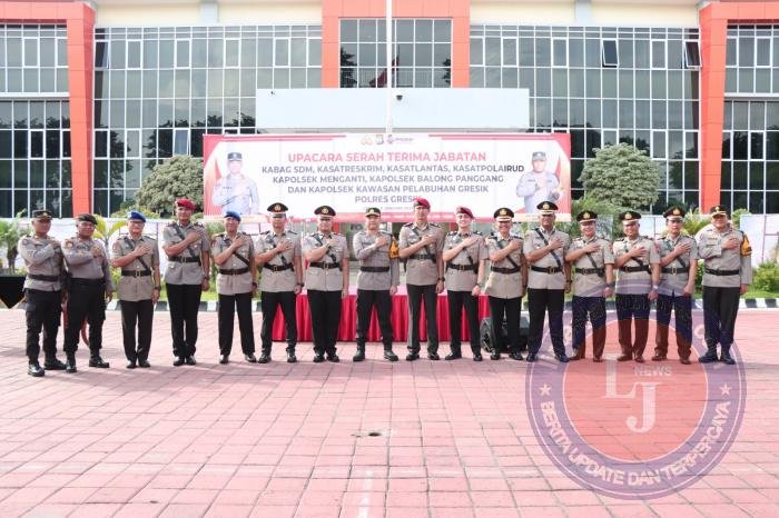 GRESIK Pagomex.com – Polres Gresik melaksanakan upacara serah terima jabatan (sertijab) Pejabat Utama (PJU) dan Kapolsek jajaran pada Rabu (08-01-2024) di halaman Mapolres Gresik. Dipimpin oleh Wakapolres Gresik, Kompol Danu Anindhito Kuncoro Putro, S.I.K., M.H., kegiatan ini menjadi langkah strategis dalam penyegaran organisasi sekaligus penguatan pelayanan publik di wilayah hukum Polres Gresik.