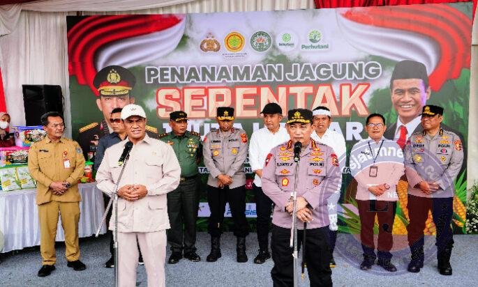 Kapolri Jenderal Polisi Drs.Listyo Sigit Prabowo, M.Si. dalam sambutannya menegaskan komitmen Polri dalam menjalankan arahan Presiden untuk mendukung ketahanan pangan nasional. Ia memaparkan bahwa target 1 juta hektare lahan jagung diharapkan tercapai tahun ini dengan produktivitas yang maksimal.