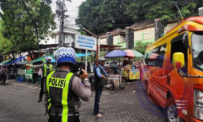 Selanjutnya, patroli diarahkan ke Makam Sunan Giri, yang sempat mengalami kepadatan. Berkat kerja cepat dan terukur anggota Satlantas Polres Gresik, kepadatan berhasil teratasi dengan menertibkan parkir liar yang dianggap mengganggu kelancaran lalu lintas. Para petugas juga memberikan arahan kepada juru parkir agar menyediakan kantong parkir cadangan dan tetap memprioritaskan kenyamanan serta keamanan pengunjung.