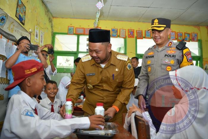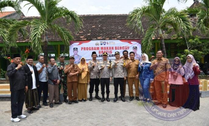 GRESIK Pagomex.com – Kapolres Gresik, AKBP Rovan Richard Mahenu, bersama Bupati Gresik, H. Fandi Akhmad Yani, menggelar kegiatan pembagian Makan Bergizi Gratis (MBG) di SDN-71 Gresik, Dusun Mando, Desa Pandu, Kecamatan Cerme, Kabupaten Gresik, pada Senin (10/02/2025). Acara ini dihadiri oleh jajaran Pejabat Utama (PJU) Polres Gresik, Muspika Cerme, pengurus AKD, pengurus MWCNU Cerme, serta Paguyuban Pengusaha Cerme Barat.