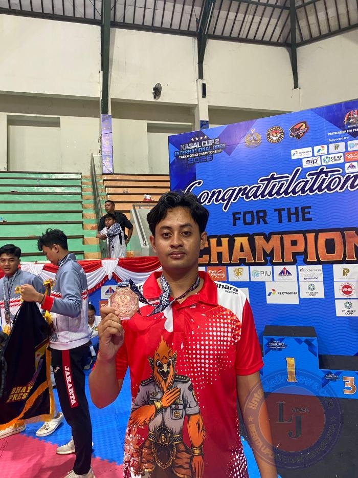 GRESIK Pagomex.com – Prestasi membanggakan kembali ditorehkan oleh anggota kepolisian di ajang olahraga internasional. Bripda Bintang Samudera dari Polda Jawa Timur sukses meraih juara 3 dalam kategori TNI-Polri kelas over 87 kg pada Kasal Cup 2 International Open Taekwondo Championship 2025 yang digelar di GOR Purna Krida, Badung, Bali, pada 14 sampai dengan 16 Februari 2025.
