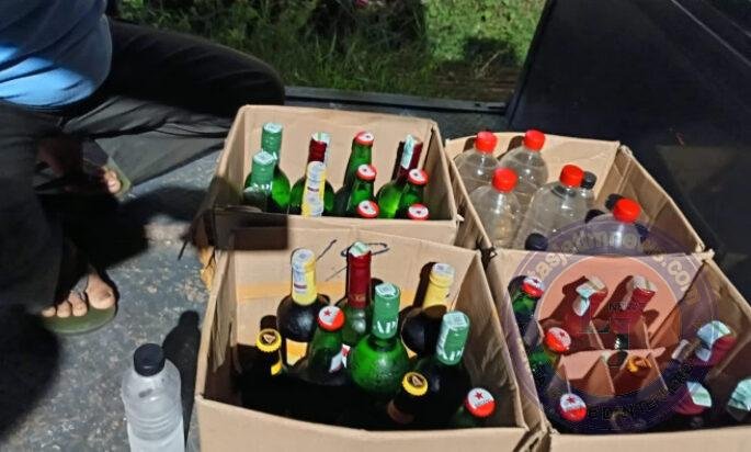 Barang bukti yang diamankan meliputi Arak kecil 8 botol, Arak besar 5 botol, Guinness 6 botol, Anggur Hijau Kawa-Kawa 6 botol, Bir Bintang 10 botol, Api 5 botol, Anggur Merah 4 botol.