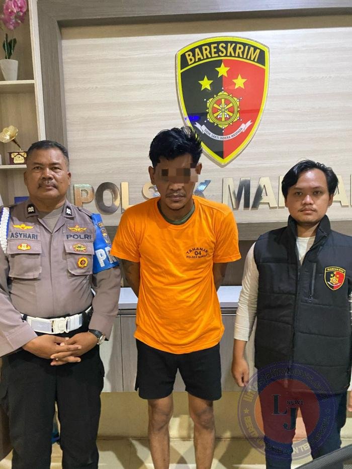 Mendapat laporan tersebut, Unit Reskrim Polsek Manyar bergerak cepat dengan mendatangi lokasi, meminta keterangan saksi, serta memeriksa rekaman CCTV. Dari hasil penyelidikan, polisi mengidentifikasi pelaku adalah DCC (38), yang ternyata merupakan tetangga korban.