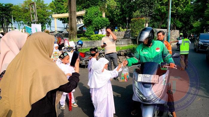 GRESIK Pagomex.com – Ratusan Siswa Paud Islam Bakti 5 Randuagung Kecamatan Kebomas Kabupaten Gresik, Membagikan paket sembako untuk menyambut datangnya Bulan Suci Ramadhan di Bundaran GKB Gresik, Rabu (26/02/2025)
