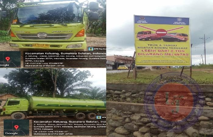 BANYUASIN Pagomex – Guna mengeruk keuntungan pribadi,mobil angkutan minyak yang diduga dikendalikan R bebas melintas di wilayah Hukum Polres Musi Banyuasin,Truck tangki Hino dengan nomor plat BA 9508 AO, diketahui melintas di jalan Keluang dengan muatan berlebih. Meskipun sudah ada papan plang himbauan dari Satlantas Polres setempat, aksi tersebut tetap berlangsung, terkesan kebal hukum.(Investigasi Gabungan Awak media,9 Maret 2025)