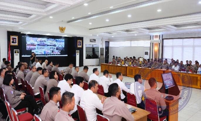 Kegiatan tersebut dipimpin oleh Waka Polda Kalbar Brigjen Pol Roma Hutajulu, S.I.K, dengan didampingi oleh Irwasda Polda Kalbar Kombes Pol Sigit Jatmiko, S.I.K dan Karo Ops Polda Kalbar Kombes Pol Asep Saepudin, S.I.K., serta diikuti oleh Personel Polda yang terlibat OPS Ketupat Kapuas 2025 baik secara langsung maupun secara daring.