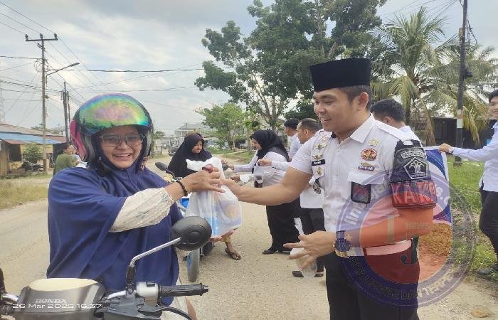 INDRAGIRIHULU Pagomex – Rumah Tahanan Negara (Rutan) Kelas IIB Rengat, Kabupaten Indragiri Hulu (Inhu), Provinsi Riau, berbagi-bagi takjil kepada pengguna jalan, yang melintas di sekitar Rutan.