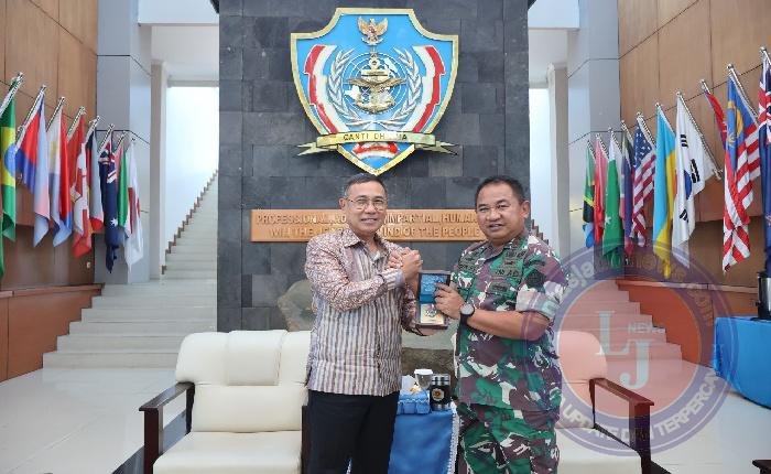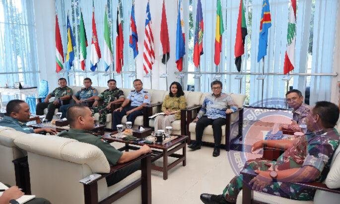 BOGOR Pagomex – Komandan PMPP TNI Mayjen TNI Taufik Budi Santoso, S.Hub.Int., M.H.I. beserta para PJU PMPP TNI menerima Kunjungan Duta Besar (Dubes) RI untuk Lebanon dan Direktur Keamanan Internasional dan Perlucutan Senjata (KIPS) Kemenlu RI bertempat di Lobby Mako PMPP TNI Sentul, Bogor (14/04/2025).