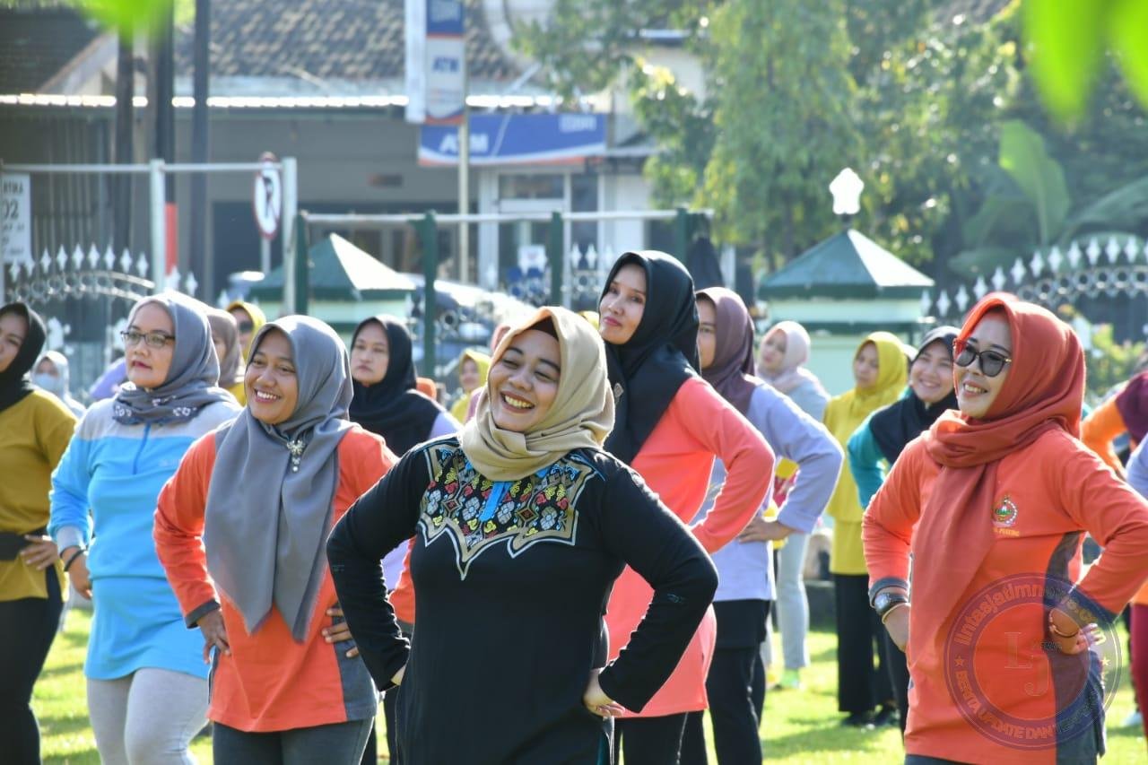 Olahraga senam bersama yang rutin dilakukan secara berkala dan masih dalam suasana Idul Fitri tersebut dipandu pelatih senam dari Persit KCK Cab XVI Dim Ponorogo (Ibu Sutami Pena) dan diikuti Ketua Persit KCK Cabang XVI Kodim 0802 Ponorogo Ibu Dina Soerjono.