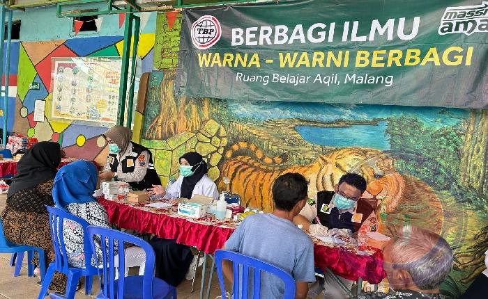 KOTA MALANG Pagomex – Polresta Malang Kota Polda Jatim melaksanakan Bakti Kesehatan (Bakkes) bersama Yayasan Anak Bangsa serta komunitas sosial Masive Amal Jakarta di Kampung Tematik Warna-Warni, Jodipan, Kota Malang.
