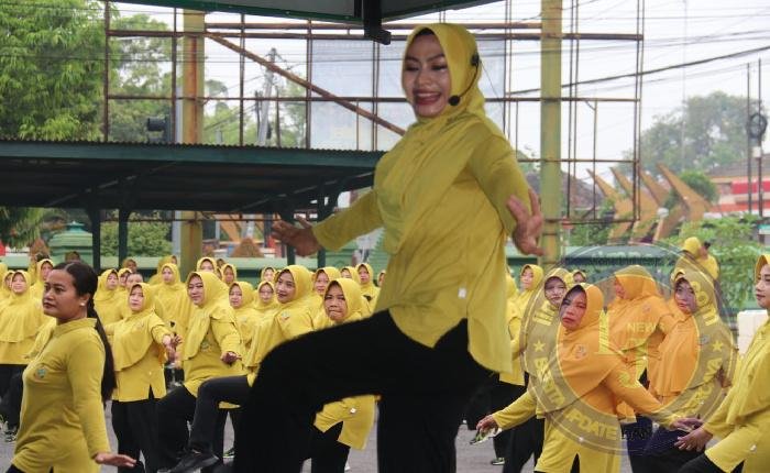 NGAWI Pagomex – Anggota Persit Kartika Chandra Kirana Cabang XIX Dim 0805/Ngawi melaksanakan senam aerobik bersama bertempat di Depan Makodim, Kamis (17/04/2025).