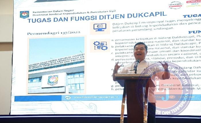 BANJARNEGARA Pagomex – Dirjen Kependudukan dan Pencatatan Sipil Kementerian Dalam Negeri RI, Teguh Setyabudi, menyampaikan pelayanan adminduk harus membahagiakan masyarakat. Pelayanan yang diberikanpun harus cermat, tepat, akurat dan gratis.