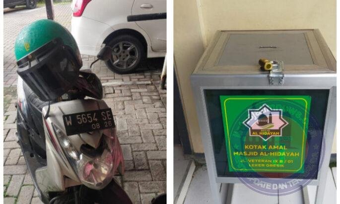 GRESIK Pagomex.com – Seorang pria berinisial MZ diamankan di Mapolsek Kebomas. Pria berusia 40 tahun ini kepergok takmir masjid Masjid Al-Hidayah Jalan Veteran Gang 9 Nomor 1 RT.001 RW.002 Kelurahan Singosari, Kecamatan Kebomas, Kabupaten Gresik saat akan melakukan aksi pencurian kotak amal.