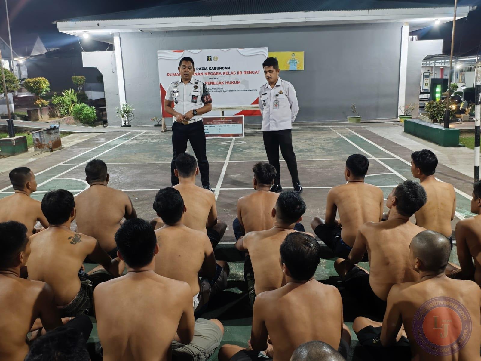 INDRAGIRIHULU Pagomex – Sebagai upaya preventif dalam menjaga keamanan dan ketertiban, Rumah Tahanan Negara Kelas IIB Rengat, Kabupaten Indragiri Hulu (Inhu) Riau melaksanakan razia dan penggeledahan insidentil. Kegiatan tersebut dipimpin langsung oleh Kepala Kesatuan Pengamanan Rutan, Wan Rezwanda bersama jajaran. Tujuan dari kegiatan ini adalah untuk memastikan tidak ada barang-barang berbahaya atau terlarang yang berada di dalam Rutan