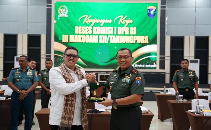 TANJUNGPURA Pagomex – Panglima Kodam XII/Tanjungpura, Mayjen TNI Jamallulael, S.Sos., M.Si., menerima kunjungan reses Komisi I Dewan Perwakilan Rakyat Republik Indonesia (DPR RI) di Aula Sudirman, Makodam Tanjungpura, Jalan Arteri Ali Anyang, Sungai Raya, Kubu Raya, Rabu (28/5/2025).