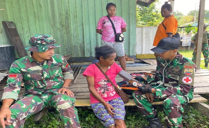 KEROM Pagomex – Suasana hangat dan penuh kepedulian tampak di Kampung Banda, Distrik Waris, Papua, Kamis (29/05/2025), saat Satgas Yonif 131/Brajasakti melalui Pos Waris menggelar kegiatan pelayanan kesehatan gratis bagi warga setempat.