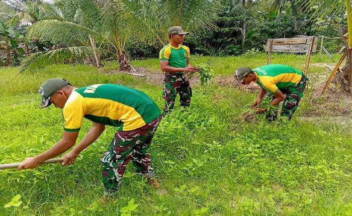 Kegiatan yang dilaksanakan mencakup pembibitan, penggemburan tanah, hingga panen berbagai jenis sayuran seperti kangkung, sawi, dan bayam. Tidak hanya untuk kebutuhan personel, hasil panen juga dibagikan kepada warga sekitar sebagai bentuk kepedulian dan kebersamaan antara TNI dan masyarakat perbatasan.