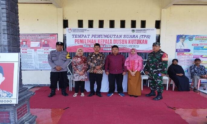 PACITAN Pagomex – Pelda Arianto S.H mewakili Danramil 0801/10 menghadiri pemungutan suara Pemilihan Kepala Dusun (Pilkasun) Kutukan, bertempat di Balai Dusun Kutukan, Desa Mendolo Kidul, Kecamatan Punung, Kabupaten Pacitan, Selasa (10/06/2025).