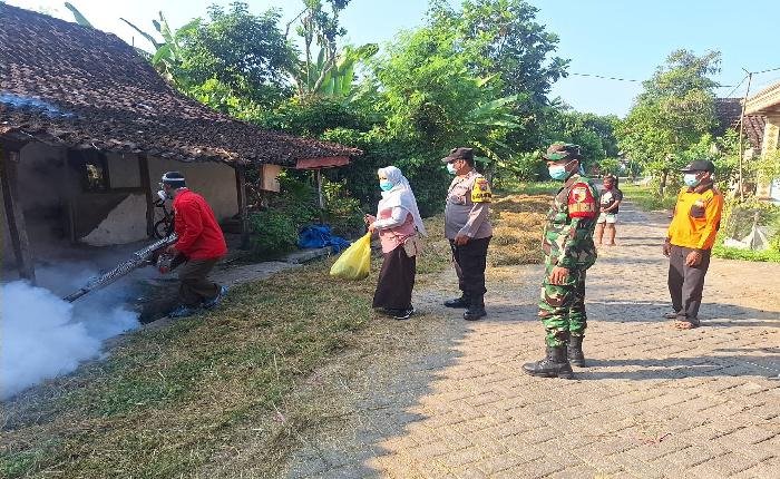 Anggota Koramil Kwadungan Dampingi Pelaksanaan Fogging