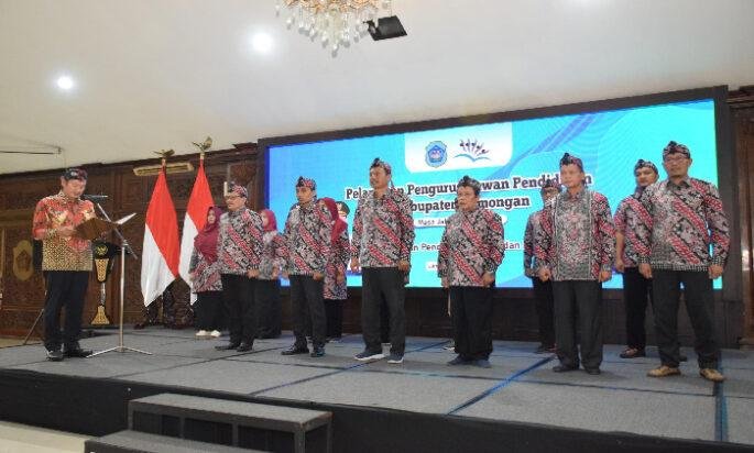 LAMONGAN Pagomex – Bupati Lamongan, Dr. Yuhronur Efendi, M.BA, secara resmi melantik Dewan Pendidikan Kabupaten Lamongan Masa Bakti 2025-2030 di Pendopo Lokatantra pada Kamis (26/6/2025). Acara ini dirangkai dengan pembukaan Sarasehan Pendidikan Inklusi dan Digital yang dihadiri oleh insan pendidikan se-Lamongan.