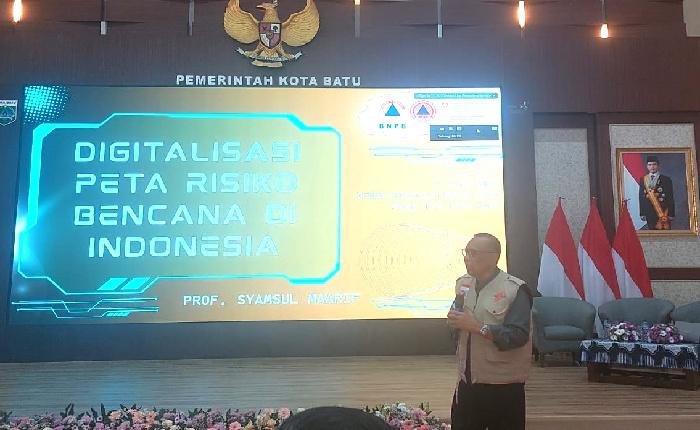 MALANG Pagomex – Direktorat Pemetaan dan Evaluasi Resiko Desiko Bencana, Badan Nasional Penanggulangan Bencana (BNPB) menyelenggarakan seminar “Digitalisasi Peta Resiko Bencan”. Seminar bertempat di Graha Pancasila Balai Kota Among Tani, Kota Batu Malang, Selasa (8/7/2025).