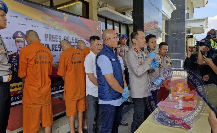 Kapolres Sumedang AKBP Sandityo Mahardika didampingi AKP Tanwin Nopiansah menyampaikan, pengungkapan ini merupakan hasil penyelidikan intensif Satreskrim Polres Sumedang berdasarkan laporan dari sejumlah korban.