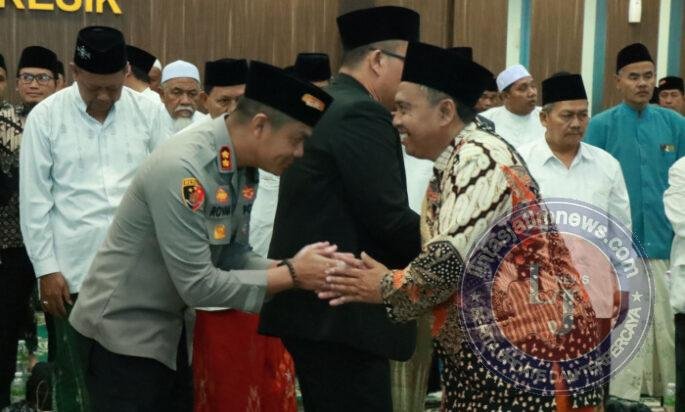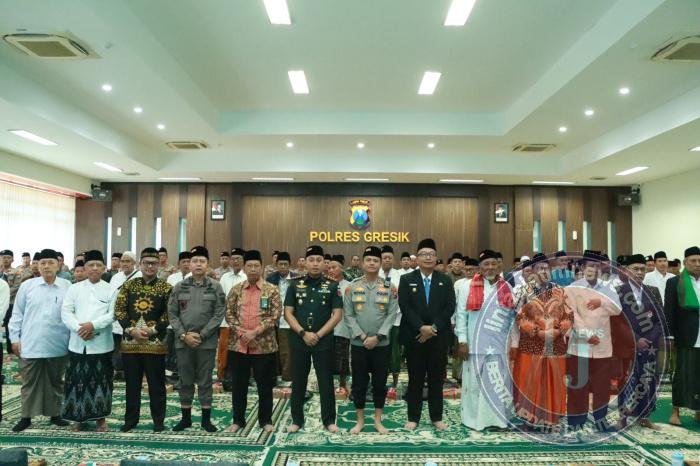 Kapolres Gresik, AKBP Rovan Richard Mahenu, menegaskan bahwa doa bersama ini merupakan momentum untuk memperkuat persatuan sekaligus menjaga kondusivitas wilayah.