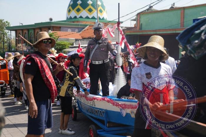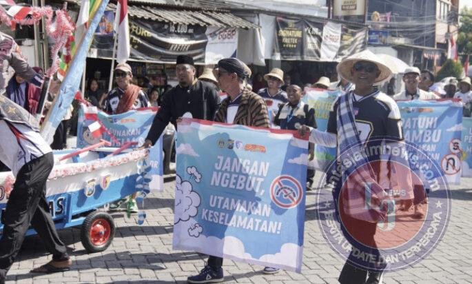 Melalui program unggulan Dirlantas Polda Jatim, “Polantas Menyapa Kampung Tertib Lalu Lintas,” petugas Satlantas tidak hanya ikut berpartisipasi dalam pawai, tetapi juga berinteraksi langsung dengan masyarakat. Pesan-pesan mengenai disiplin berlalu lintas disampaikan secara persuasif dan dikemas ringan agar mudah dipahami warga.