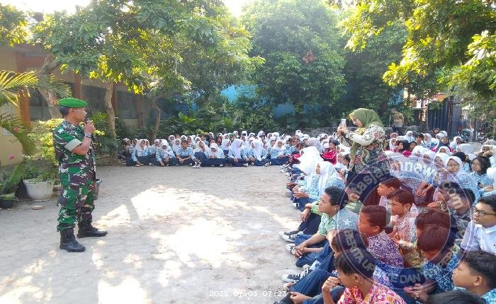 SURAKARTA Pagomex – Dalam rangka menjaga kondusifitas wilayah, Bati Batuud Koramil 03/Serengan Kodim 0735 Surakarta Pelda Sugianto melaksanakan kegiatan pengarahan dan himbauan kepada siswa-siswi SMP N 22 Surakarta, (03/09/2025).