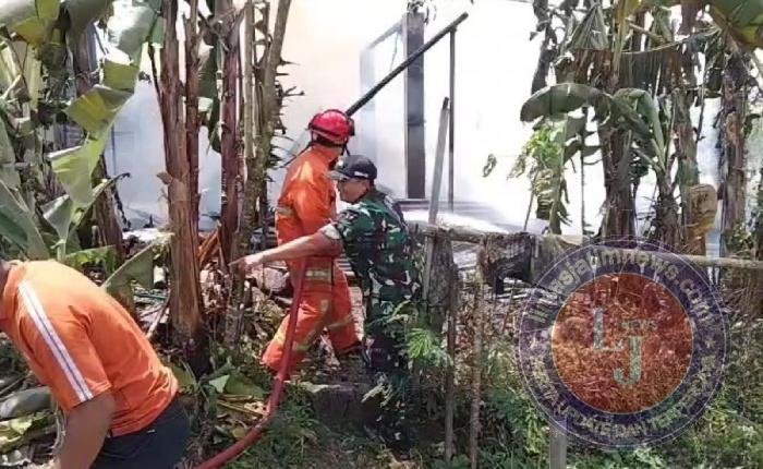Babinsa dan Damkar Trenggalek Berjibaku Padamkan Api di Dapur Rumah Warga Kerjo