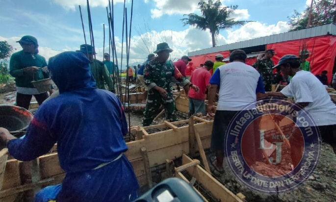 Dalam kegiatan tersebut, tampak harmoni antara prajurit TNI dan masyarakat. Mereka bahu-membahu mengangkat material bangunan, mengaduk semen, hingga menata bata. Tak ada sekat antara seragam loreng dengan pakaian warga. Semua larut dalam satu tujuan: berdirinya sebuah rumah ibadah yang menjadi pusat kegiatan spiritual warga Sambirejo.