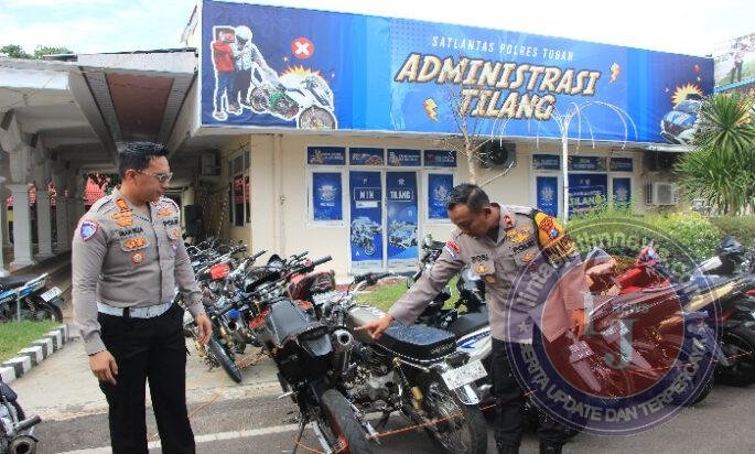 TUBAN Pagomex – Merespon keluhan warga masyarakat, Satuan Lalu Lintas Polres Tuban Polda Jatim berhasil mengamankan sedikitnya 65 unit Motor yang tidak sesuai spesifikasi teknik (Spektek) diantaranya berknalpot bising.