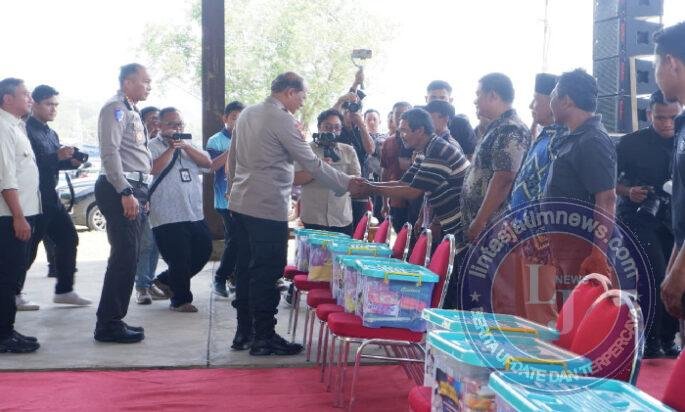 PACITAN Pagomex – Sebanyak 100 perwakilan nelayan di Tempat Pelelangan Ikan (TPI) Pelabuhan Tamperan, Pacitan menerima bantuan paket sembako dari Kapolda Jawa Timur Irjen Pol Drs Nanang Avianto,M.Si, Jumat (12/9/25).