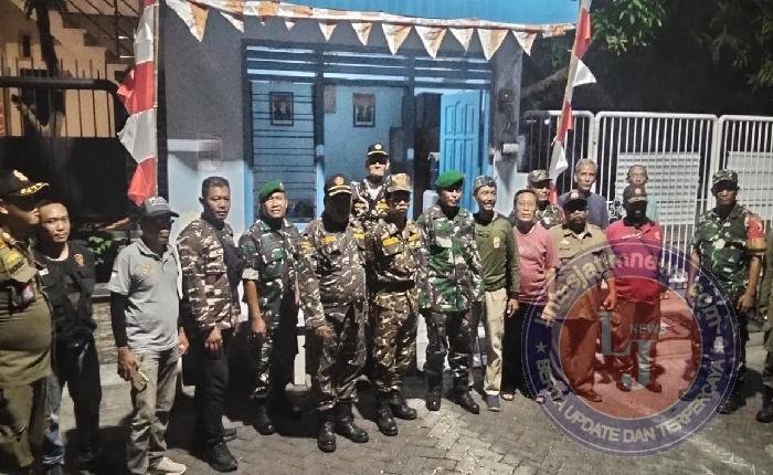SURABAYA Pagomex – Makoramil 0830/09 gubeng melaksanakan patroli PAM(pengamanan) swakarsa gabungan bersama Polisi pamong praja, FKPPI (forum komunikasi putra-putri purnawirawan indonesia) banser (Barisan Serbaguna), arek jogoboyo Kecamatan gubeng (13/09/25) di Makoramil 0830/09 gubeng.