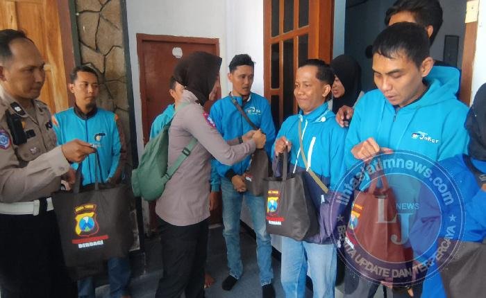 BONDOWOSO Pagomex – Puluhan pengemudi Ojek Online (Ojol), tukang becak dan sukarelawan pengatur lalu lintas (supeltas) tersenyum riang saat beberapa anggota Satuan Lalu Lintas Polres Bondowoso Polda Jatim menghampiri mereka.