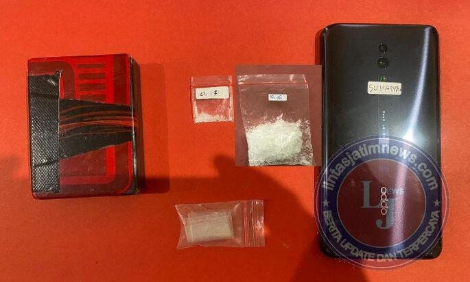 Saat penggeledahan, polisi menemukan satu kantong plastik kecil berisi sabu seberat 0,054 gram, enam plastik klip kosong, sebuah kotak merah-hitam, dan satu unit ponsel Oppo warna hitam.