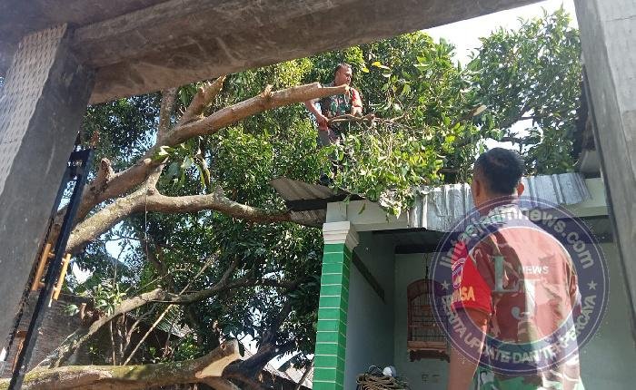 Bencana alam yang terjadi secara tiba-tiba itu langsung ditangani Babinsa dan masyarakat sekitar dengan bergotong-royong. Didukung peralatan yang memadai, Sertu Sumarno tangkas memimpin pemotongan serta pemindahan pohon yang menimpa salah satu rumah warga, sehingga proses renovasi bisa segera dilakukan.