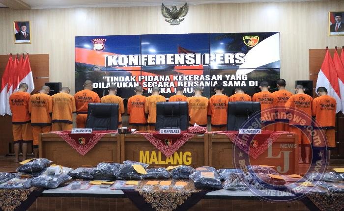 “Proses hukum terhadap seluruh pelaku berjalan sesuai aturan yang berlaku,” kata AKBP Danang dalam konferensi pers di Polres Malang, Senin (22/9/2025).