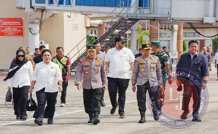 OKU TIMUR Pagomex – Kapolri beserta Ketua Komisi IV DPR RI, Menko Pangan, Kepala Badan Pangan Nasional, dan Dirut Bulog terpantau tiba di Mahmud Badaruddin II dari Palembang dilanjutkan menaiki helikopter Polri menuju Kab. OKU Timur, Prov. Sumsel pada Sabtu, 27 September 2025.