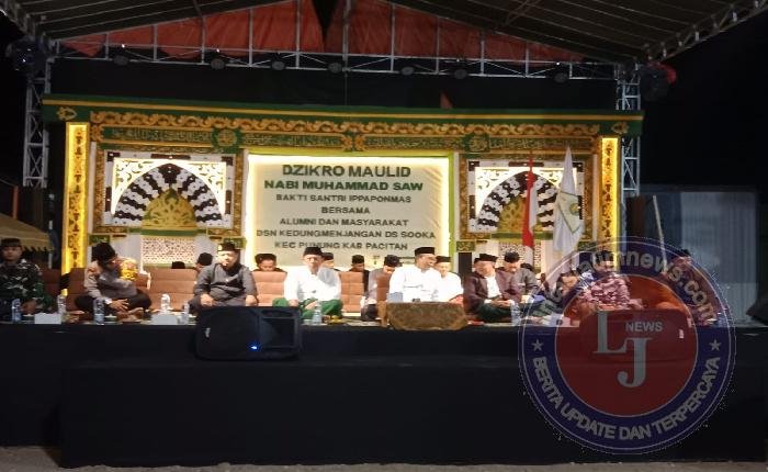 Kegiatan pengajian yang digelar dalam rangka memperingati Maulid Nabi Muhammad SAW tersebut dihadiri ratusan jamaah dari berbagai wilayah,bertempat di lapangan Dusun kedung menjangan, Desa Sooka, Kecamatan Punung, Kabupaten Pacitan, pada Sabtu (27/9/2025)malam, Kehadiran aparat TNI bersama Banser dalam pengamanan menjadi bentuk nyata sinergi antara unsur pertahanan dan komponen masyarakat.