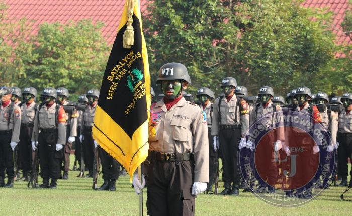 Dalam upacara yang berlangsung khidmat, angkatan Diktukba Polri T.A. 2025 SPN Polda Jatim secara resmi diberi nama “Satria Yana Anucasana”.