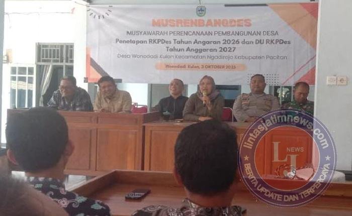PACITAN Pagomex – Babinsa Koramil 0801/07 Ngadirojo Sertu Tri Sutrisno menghadiri kegiatan Musyawarah Perencanaan Pembangunan Desa (Musrenbangdes) tahun anggaran 2026 yang diselenggarakan oleh pemerintah Desa Wonodadi yang bertempat di balai Desa Wonodadi Kec. Ngadirojo, Kab. Pacitan. Sabtu (4/10/2025).
