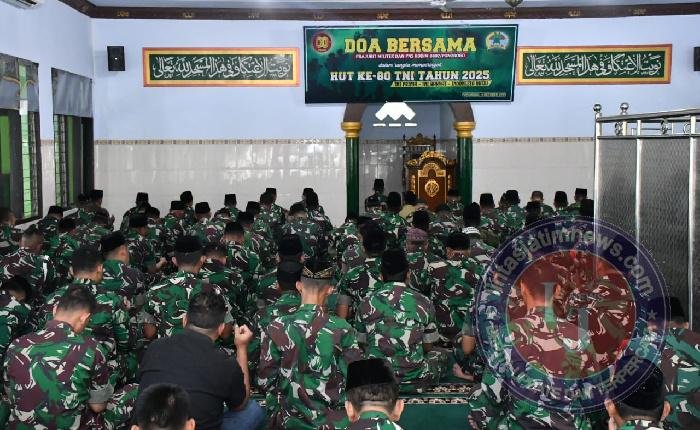 Doa bersama yang berlangsung penuh khusuk tersebut dipimpin Serma Edy anggota Makodim 0802/Ponorogo yang sehari hari juga sebagai Imam Masjid Al Muttahidah dengan inti doa yakni untuk kelancaran dan kesuksesan pelaksanaan kegiatan HUT ke 80 TNI tahun 2025 serta memohon agar kita semua disukseskan dalam mengemban tugas pokok sebagai anggota TNI.